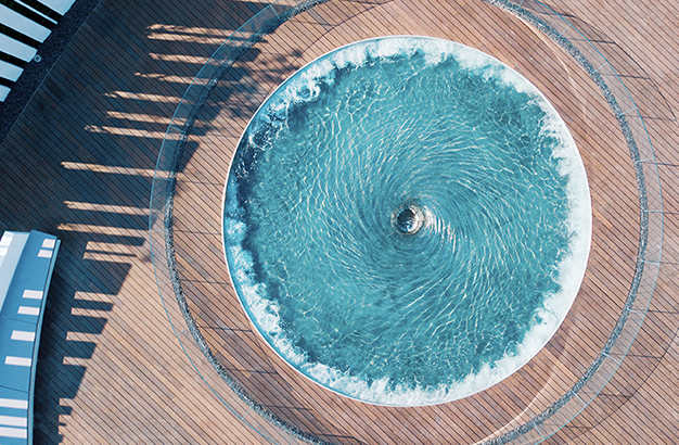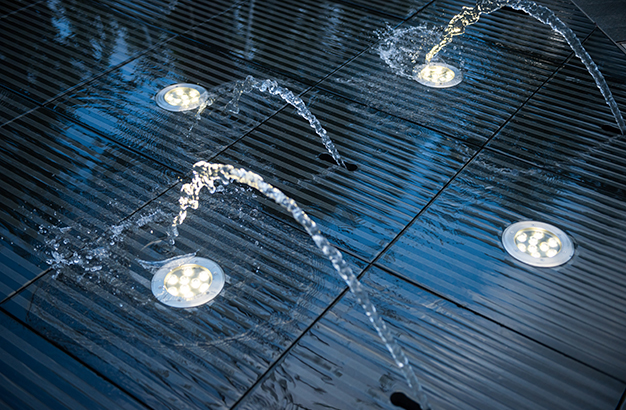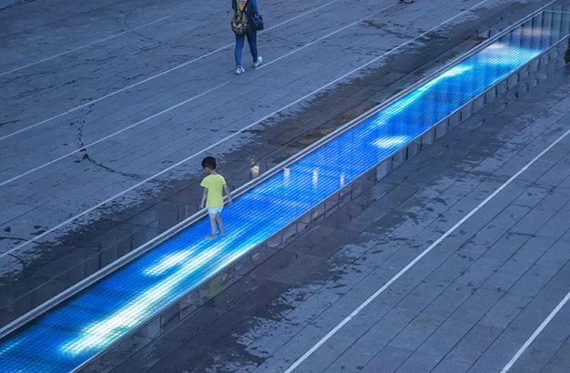 水本無(wú)形,它的物理特性讓它能輕易地跟隨容器而呈現(xiàn)不同的面貌。獨(dú)特的延展性使得水能呈現(xiàn)無(wú)以計(jì)數(shù)的不同效果。燈光的布置,介質(zhì)的紋理,顏色和動(dòng)態(tài)都能給水帶來(lái)無(wú)窮的變化